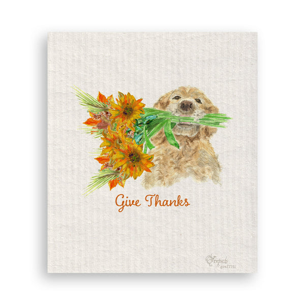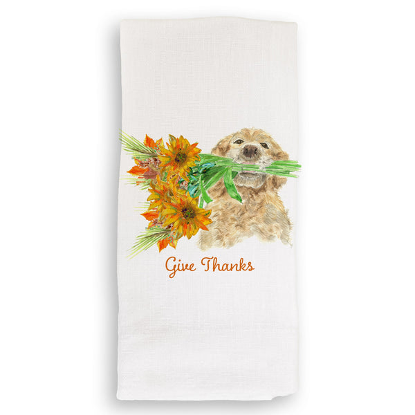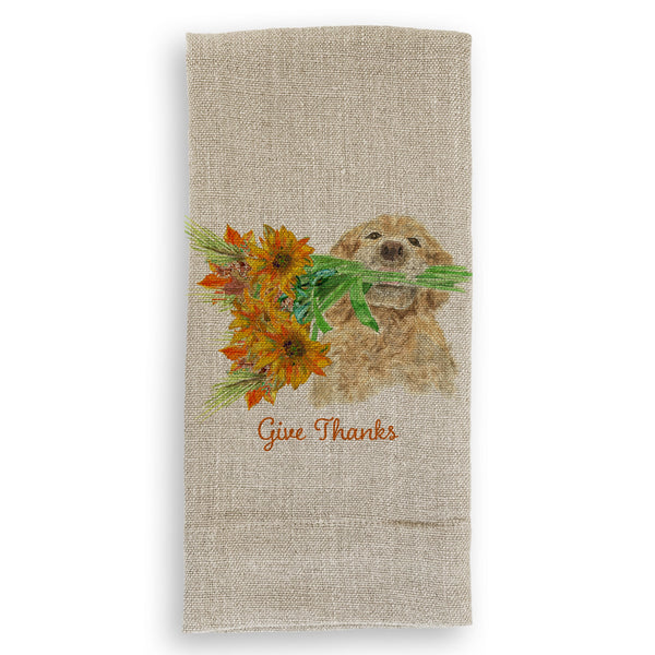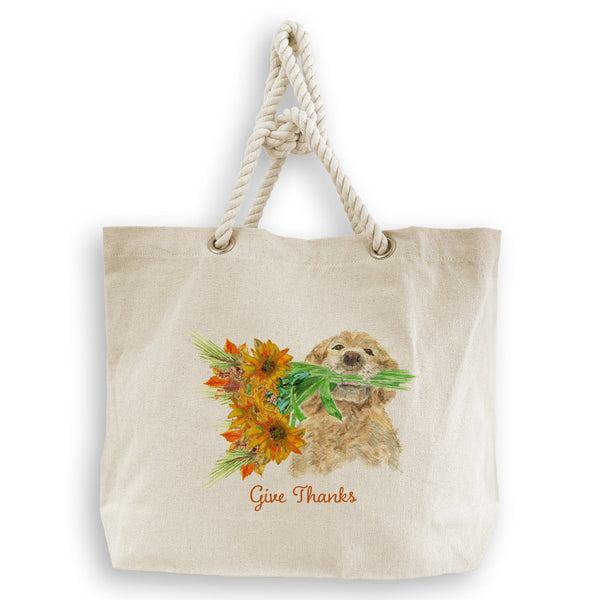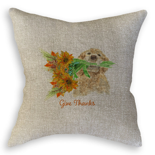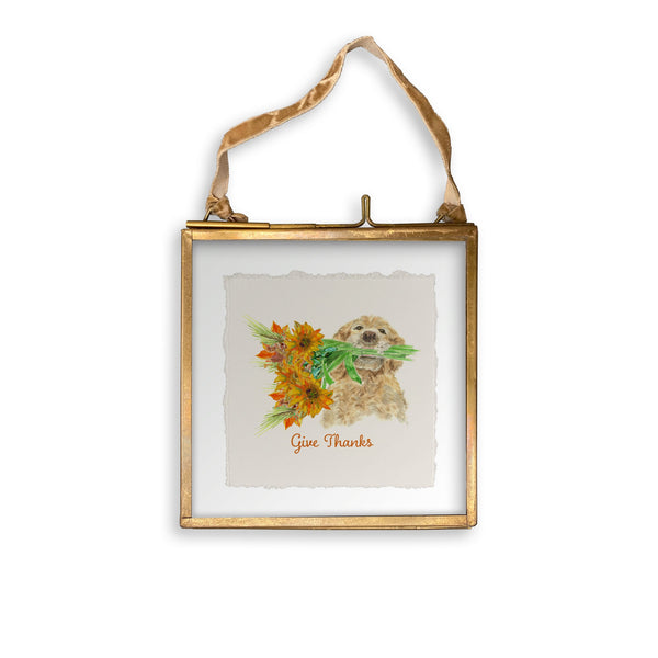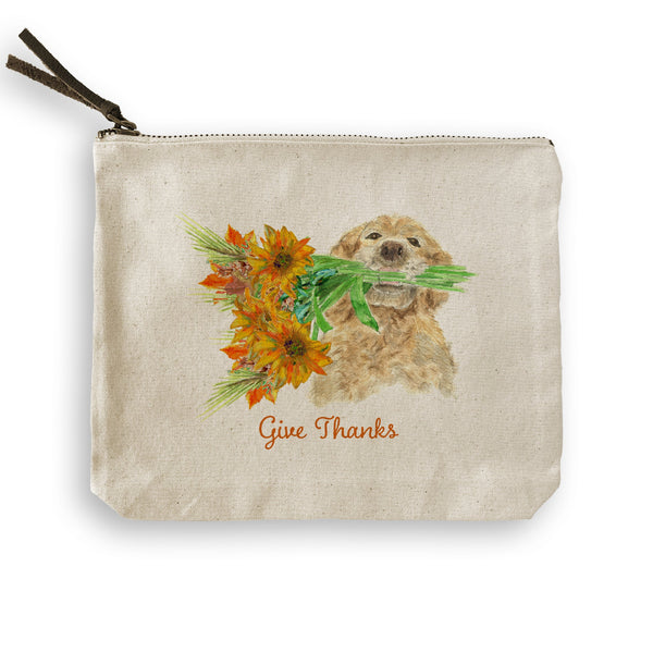 Dog Holding Fall Flowers