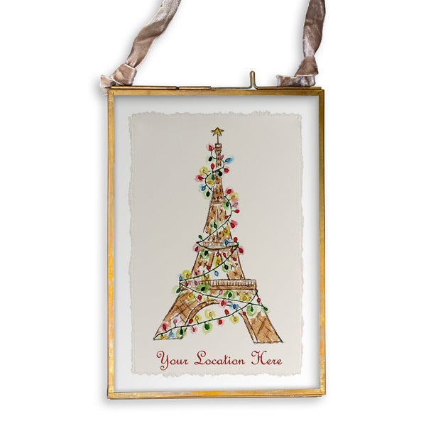 Eiffel Tower with Christmas Lights and Location