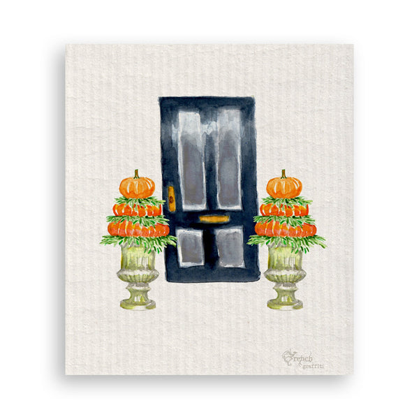 Fall Door with Pumpkin Topiary