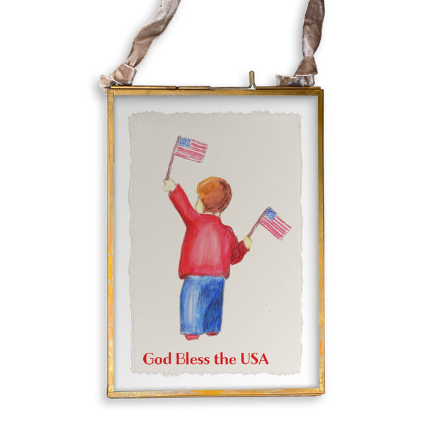 Flag Boy with God Bless the USA