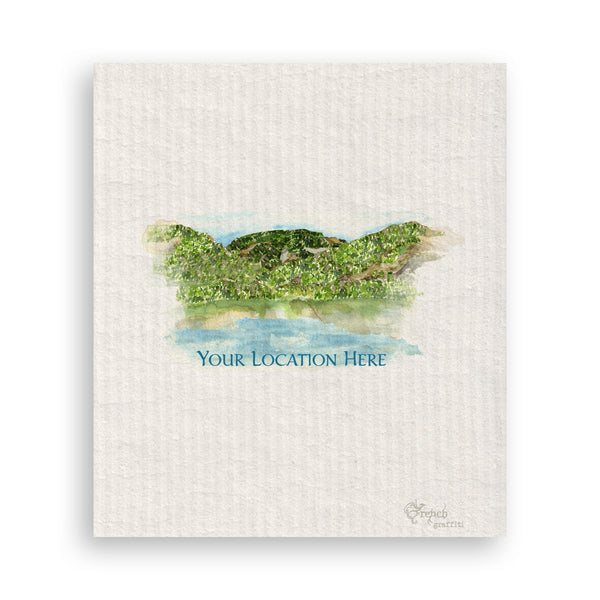 100% cotton dishtowel custom printed to order with our original artwork.