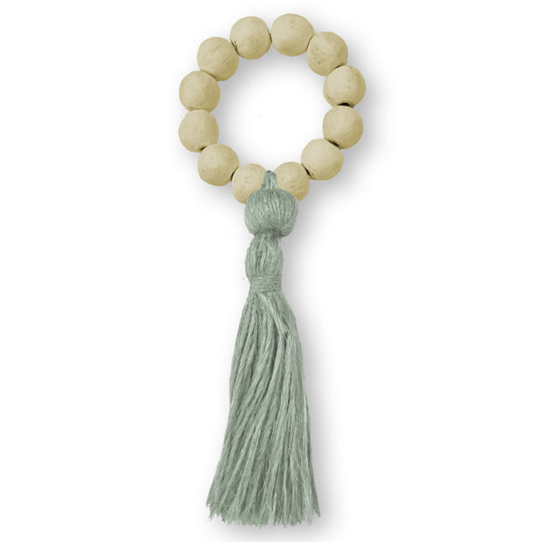 Add a touch of artisanal elegance to your table scape with our Ivory Terracotta Bead with Seafoam Jute Napkin Ring. Hand painted terracotta beads, accented with a jute tassel, create a colorful and sophisticated accessory for your dinner parties.