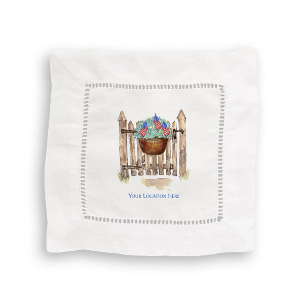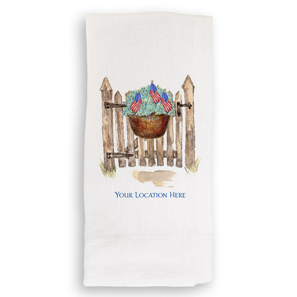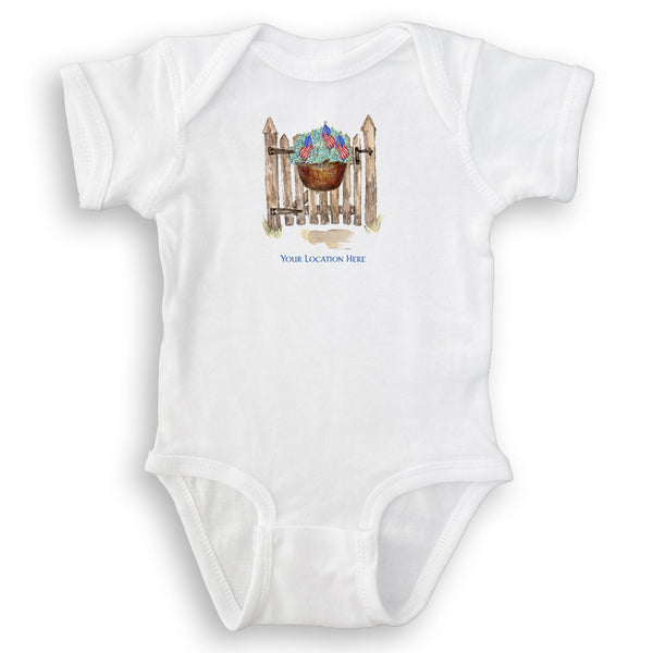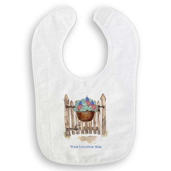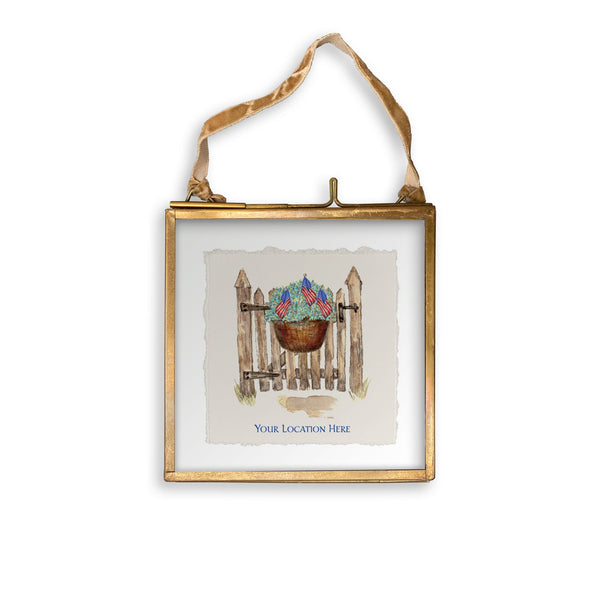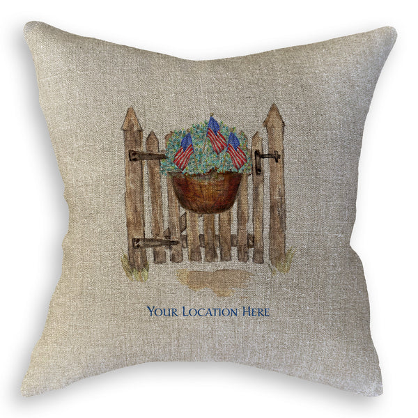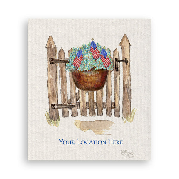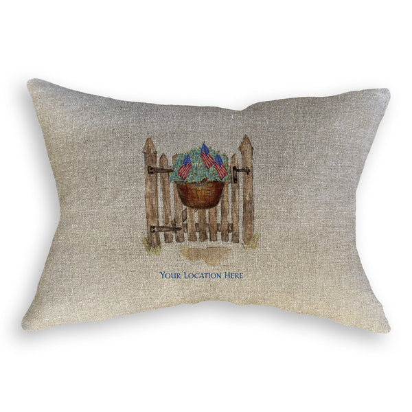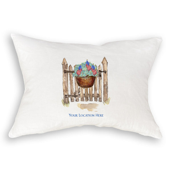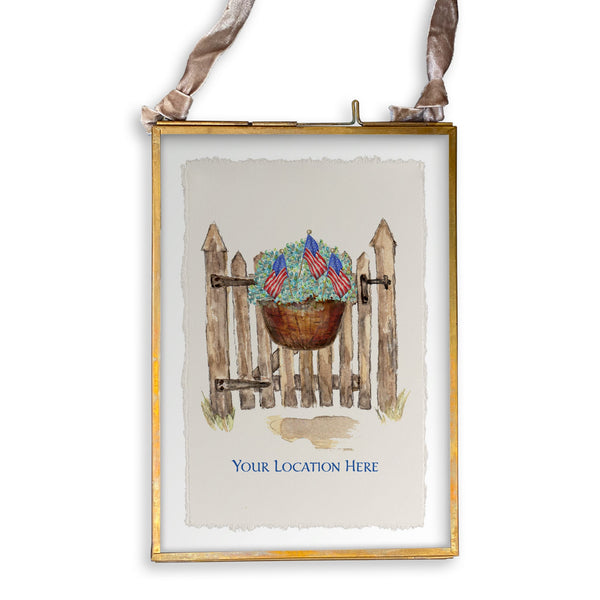 Patriotic Gate with Hydrangeas and Location