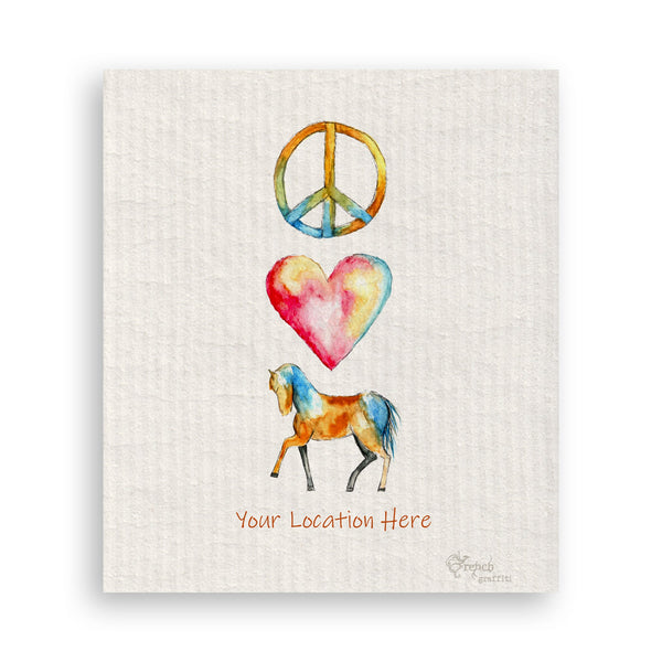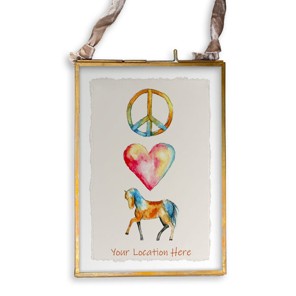Peace Love Colorful Horse with Location