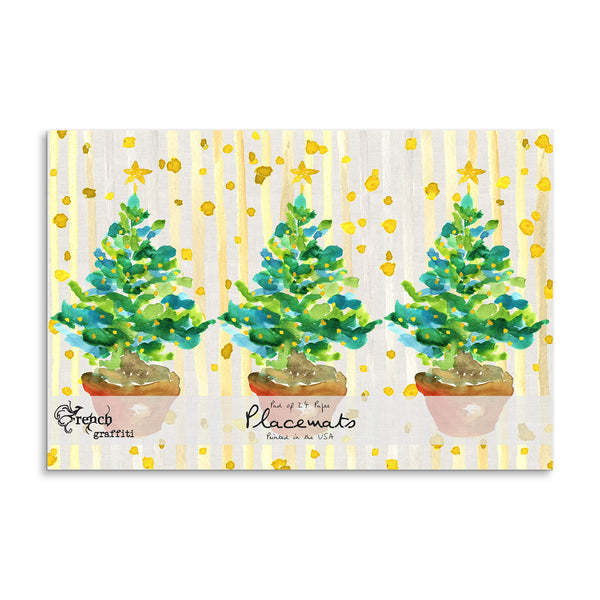 Potted Christmas Trees with Lights Paper Placemat