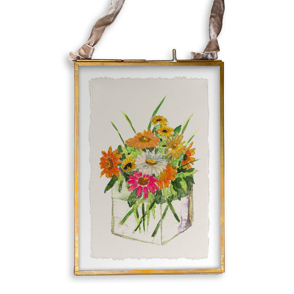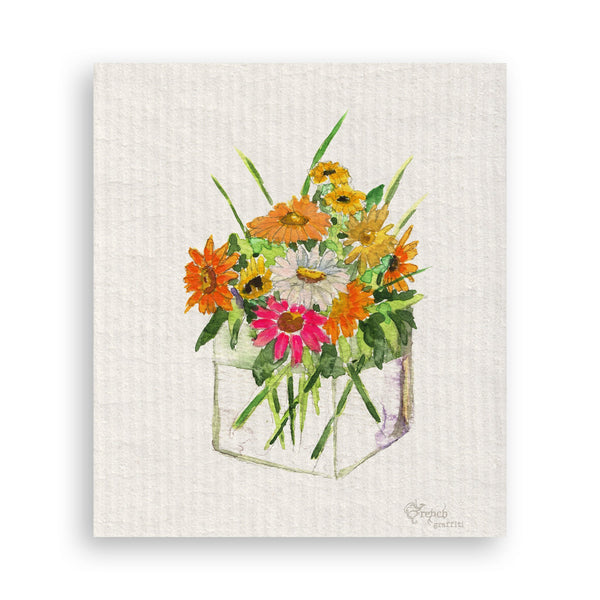 Square Vase with Flowers