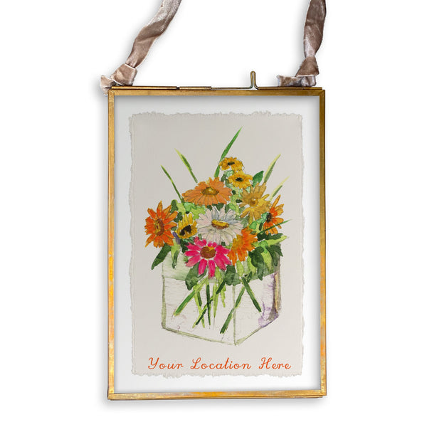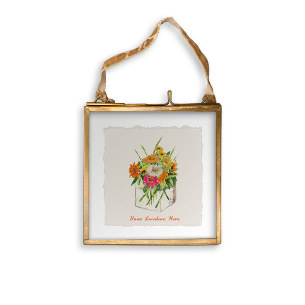 Square Vase with Flowers and Location