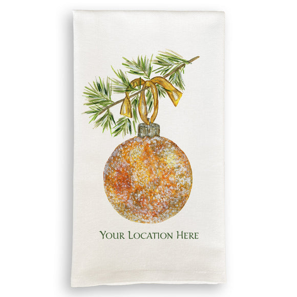 Gold Glitter Ornament with Location