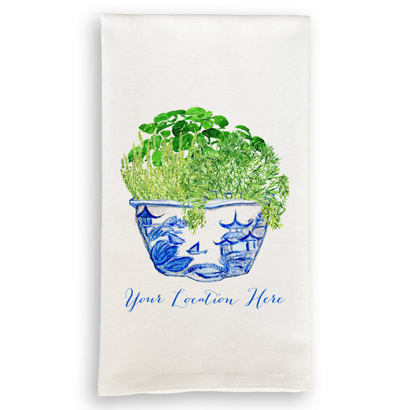 Blue & White Bowl with Herbs and Location