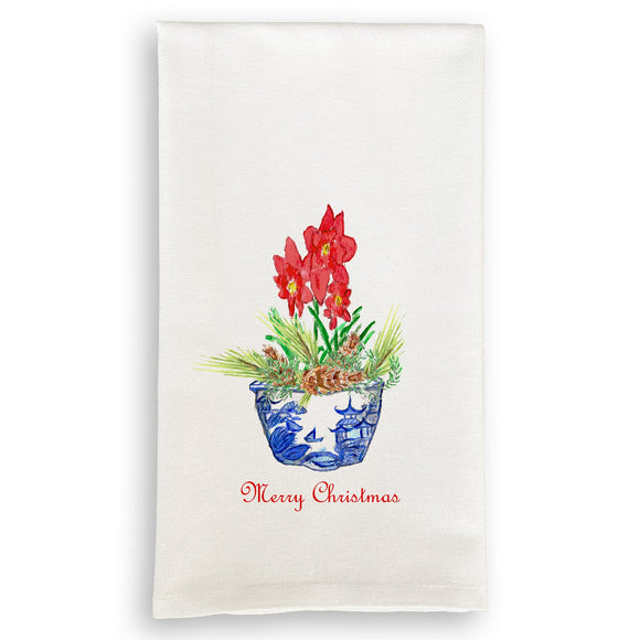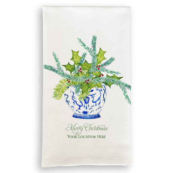 Ginger Jar with Greens and Merry Christmas