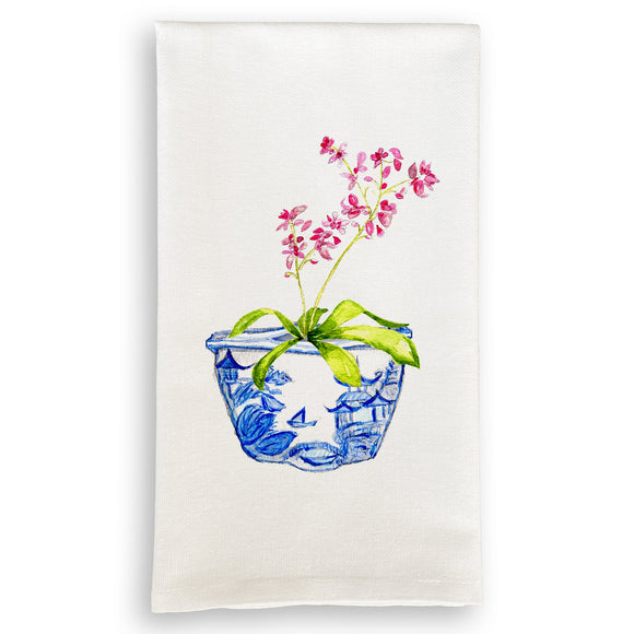 Blue & White Bowl with Pink Orchid