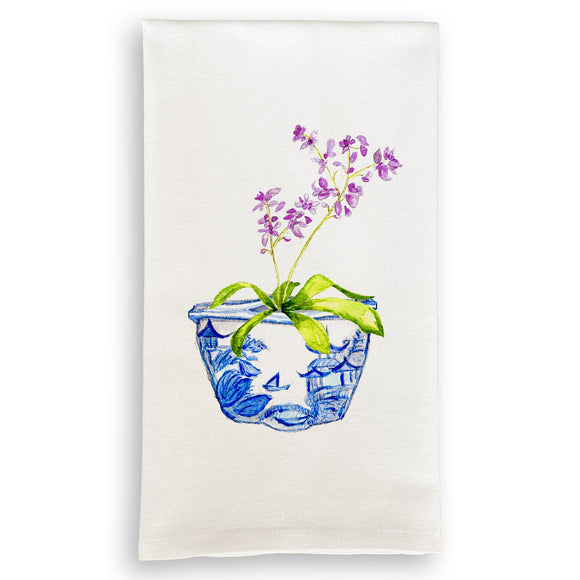 Blue & White Bowl with Purple Orchid