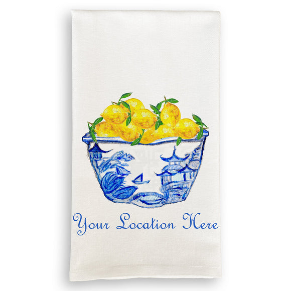 Blue & White Bowl with Lemons and Location