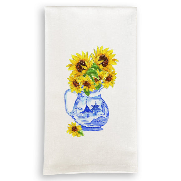 Blue & White Pitcher with Sunflowers