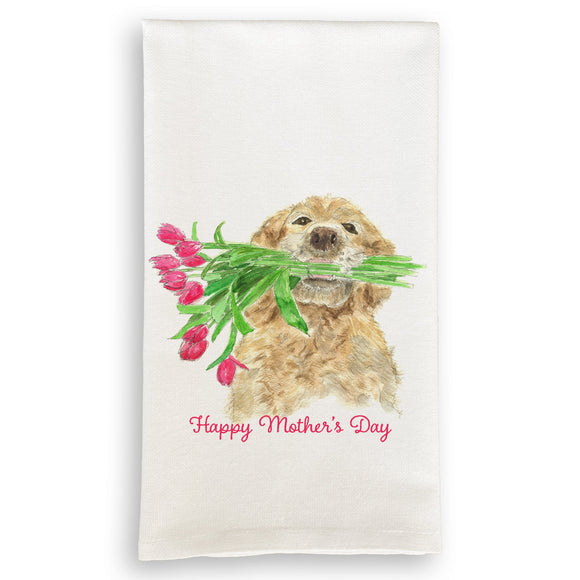 Dog Holding Flowers with Happy Mother's Day