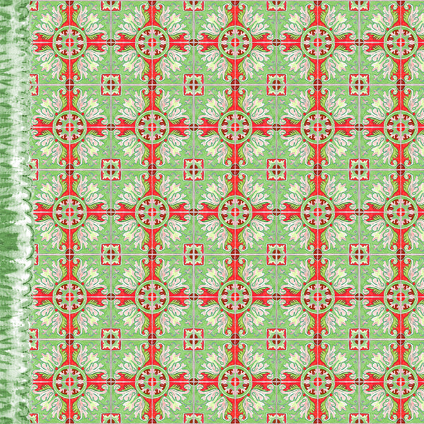 Red & Green Talavera Tiles Vinyl Floor Mat